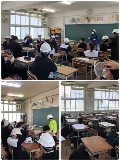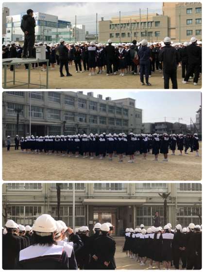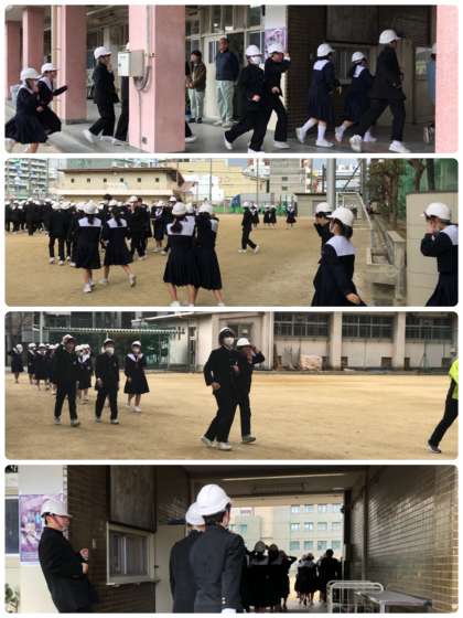 本日の6時間目、地震発生後の火災を想定して避難訓練を行いました。各教室から担任の先生の誘導のもと、運動場へと避難しました。