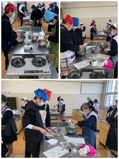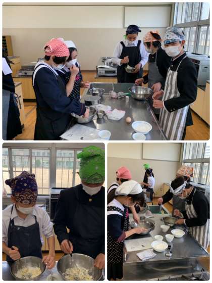 2年3組の調理実習の様子です。上に乗せてあるチョコレートがとても美味しそうです。