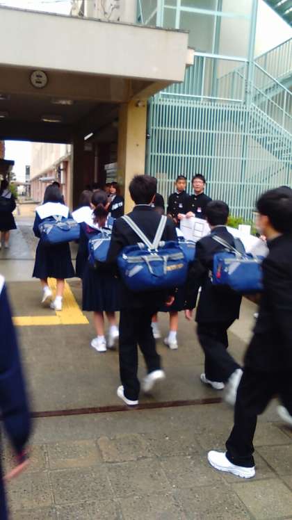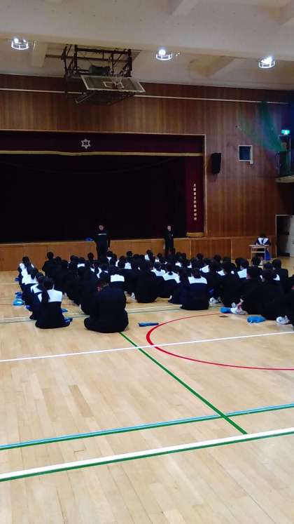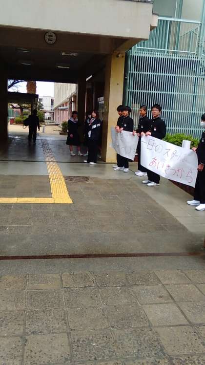 登校の様子と2年生の学年集会です。