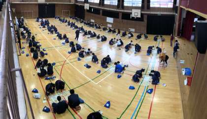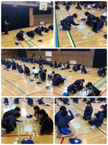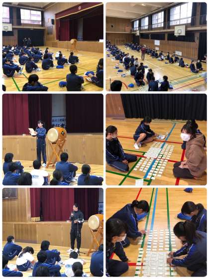5・6時間目、1年生は体育館で百人一首大会を行っています。
