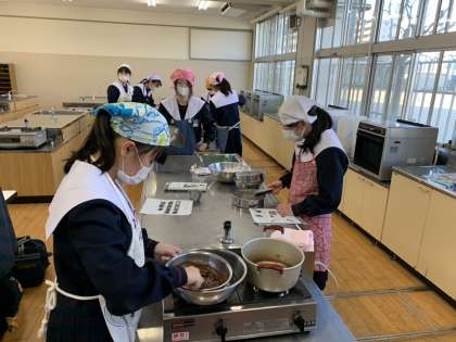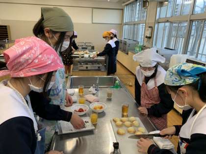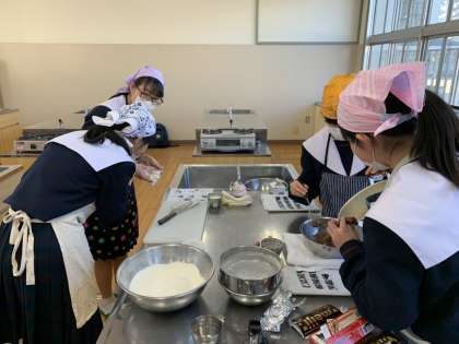 本日の放課後、家庭科部は、調理実習を行いました。いちごやフルーツとクリームをサンドしたスコーン、生チョコを作りました。