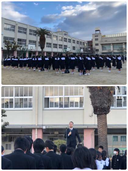 校長先生から「例年では当たり前のような寒さも、今年は暖かい日が多いので寒く感じます。校長先生は広島に住んでいましたが、昼間の気温は大阪とそんなに変わりません。ただ、朝は霜が下りたり、地面が凍ったりします。昼になるとそれらが溶けて、運動場がビチャビチャになります。