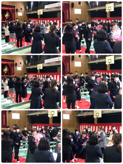 卒業生は体育館を出て、保護者の皆様の待つ北グラウンドへ歩いて行きました。