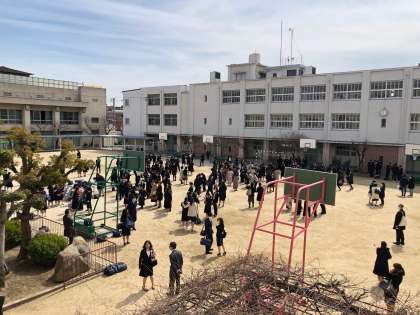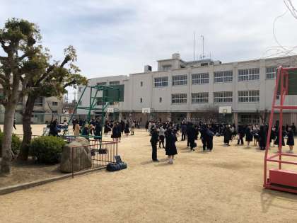中庭で、最後のひと時です。みんなで写真を撮っていました。