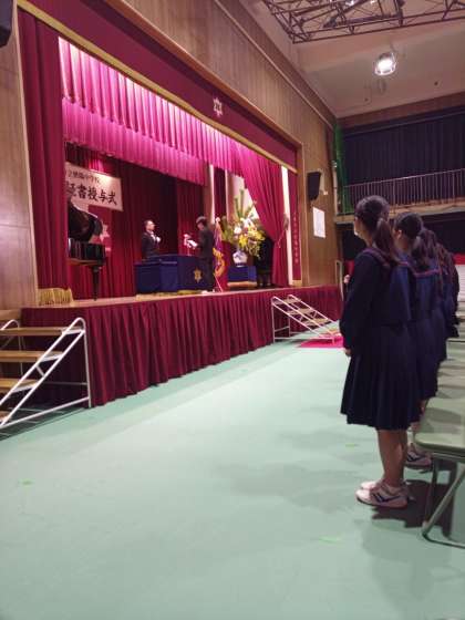 在校生代表のことばを受け、これからの摂陽中学校の未来を後輩に託しました。