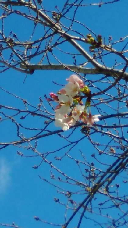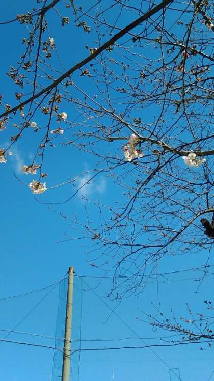 快晴で気温も上がってきました。陽当たりのいい正門付近の桜が開花しました。