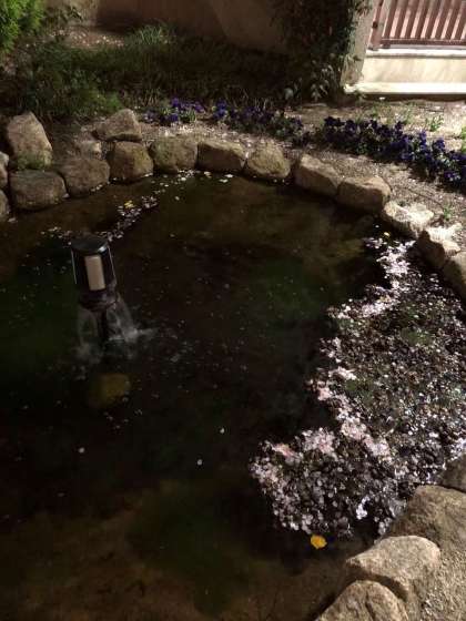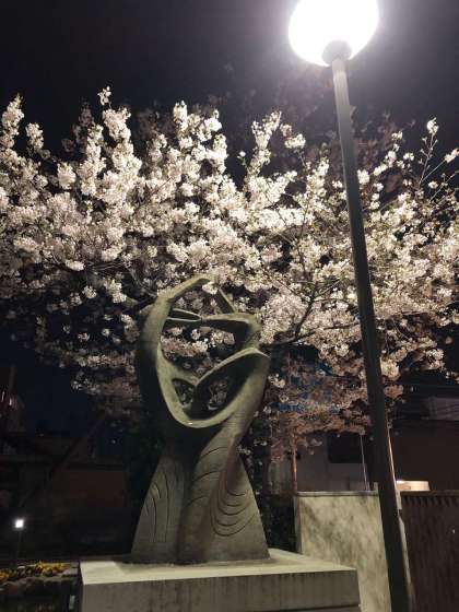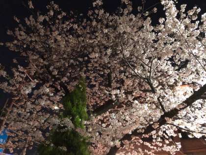 ?今日も桜が明かりに照らされ、綺麗に咲き誇っています。若干花びらが落ちてはいますが、明日の入学式にタイミングを合わせていたかのようです。