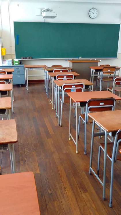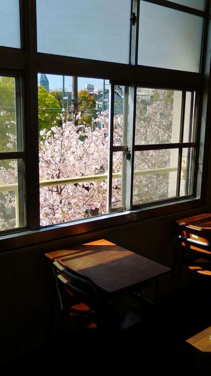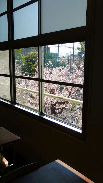 1年生の教室です。窓から満開の桜が見えます。教室も生徒の皆さんが登校できる日を待っています。