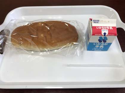 【本日の献立】 おさつパン 牛乳 パンは1個ずつ個包装されています。