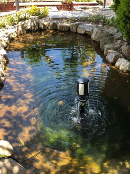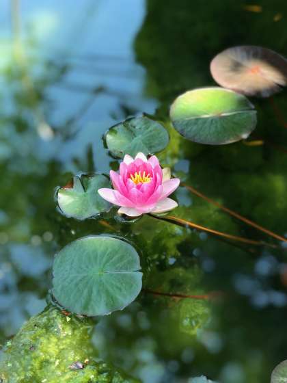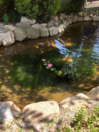 池の奥の方に蓮の花が一輪、綺麗に咲きました。