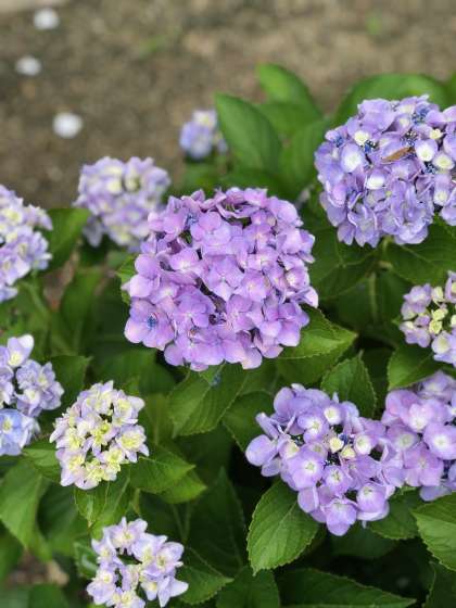 今は雨も止み、かなり蒸し暑いですが、紫陽花の花がとても綺麗です。