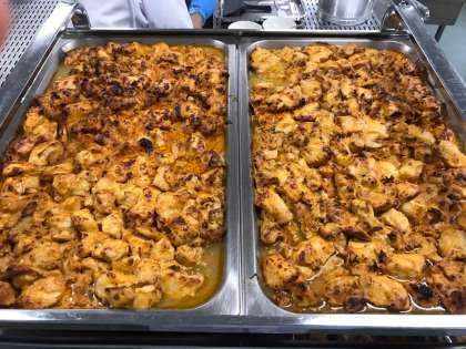 オーブンで焼き上げられた鶏肉のカレーマヨネーズ焼きです。