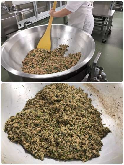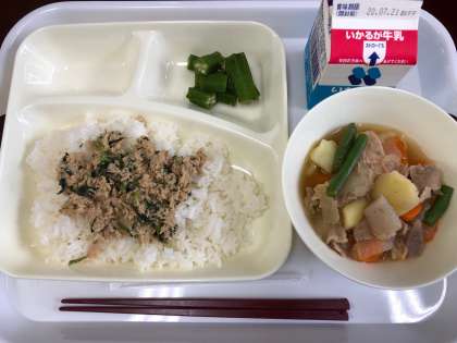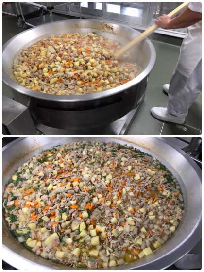 「豚肉とじゃがいもの煮もの」と「ツナっ葉いため」の調理の様子です。