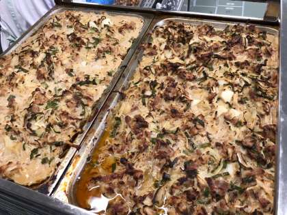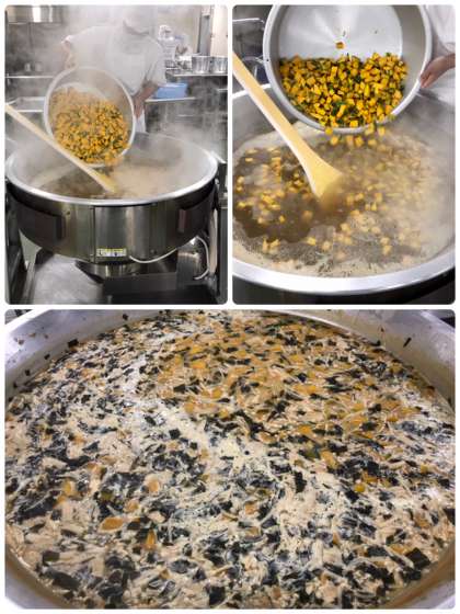 豚肉のしょうが焼きとみそ汁です。みそ汁には、かぼちゃ、えのきたけ、とうふ、わかめが入っています。