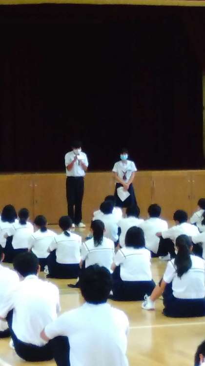 各クラスの委員長から1学期のまとめの発表があり、各先生からのことばがありました。