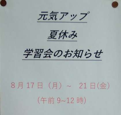 今週は午前中、学習会が行われています。宿題など自学自習に取り組んでいます。