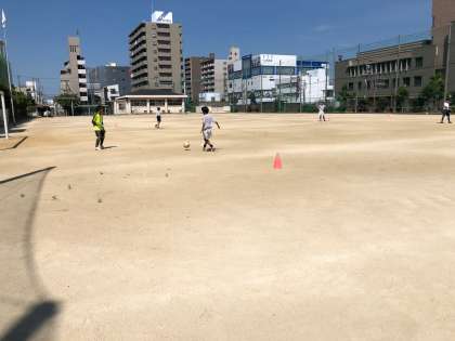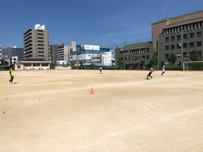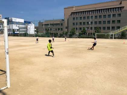休憩を取りながら、運動場ではサッカー部が活動しています。