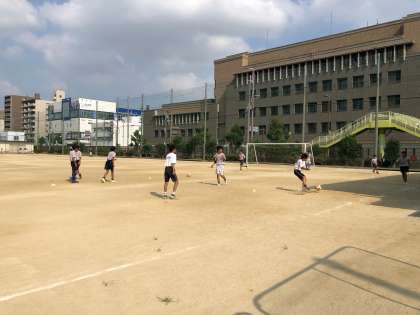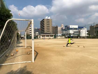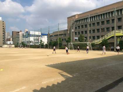 野球部の反対側ではサッカー部がパスの練習をしていました。