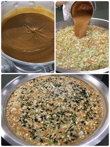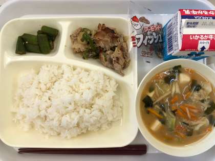 みそ汁は、とうふ、キャベツ、にんじん、もやし、えのきたけ、わかめと具だくさんでした。
