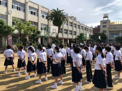 校長先生からは「テニスの大坂なおみ選手が全米オープンを優勝しました。全米オープンには2年前にも優勝をしていますが、その後の全豪オープンで年下の選手に負けてしまった時に大坂選手は、「人生は、試練の連続、勝った時より負けた時の方が学ぶことが多い。」と言っていました。今回の優勝は、様々な苦難を乗り越え、掴んだ勝利と言えます。また、大坂選手は今回の大会で、黒人差別の問題について全世界に発信しました。