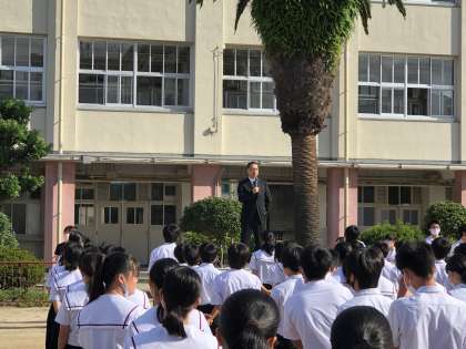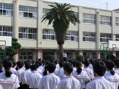 もう1つ、野球部がとても気持ちよく挨拶をしてくれると地域の人からの声が届いています。うれしいことです。野球部に限らず、みんなでしっかり挨拶をしていきましょう。」という話がありました。