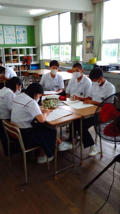 3年生の美術の授業です。スクラッチボードをつくっています。