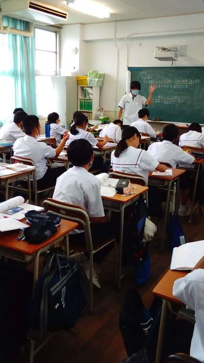 3年2組の社会、1年4組の数学、1年1組の英語の授業です。