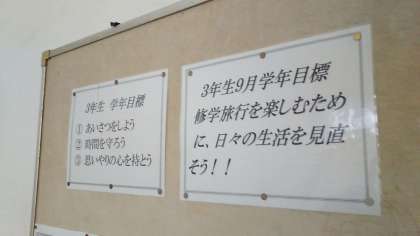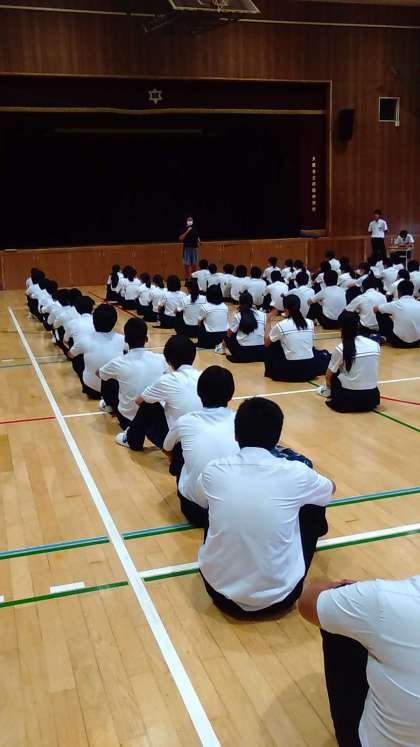 金曜日の朝は、3年生の学年集会です。来週は修学旅行です。