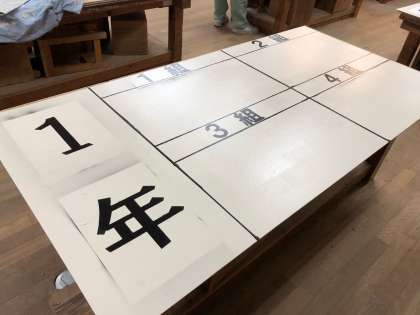 体育大会用の新しい得点板を管理作業員さんに作ってもらっています。