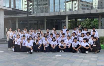 ホール屋外での記念撮影です。 演奏が終わって、みんな良い表情です。