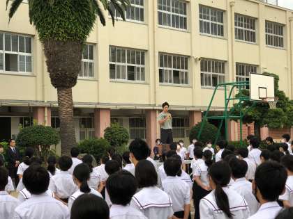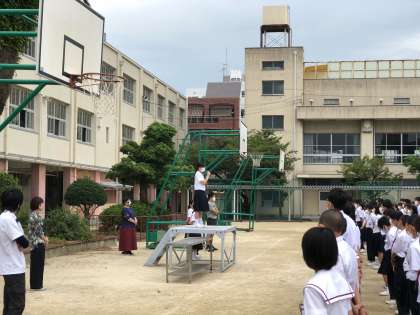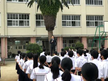「10月になり、今年度も半分が過ぎましたが、3日にハンドボール部は大阪市中学校秋季総合体育大会の決勝戦がありました。2年生の大会、3年生の春季総体の代替大会ともに決勝戦に進みました。残念ながらどちらも負けてしまいましたが、試合中、点を取られてもすぐに取り返そうと速攻で相手ゴールに向かう姿勢には感動しました。3年生は2人しかいませんが、よく後輩を引っ張り、2年生も来年につながる経験ができたと思います。