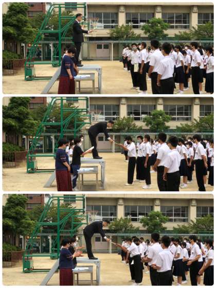 大阪市中学校秋季総合体育大会の伝達表彰を行いました。