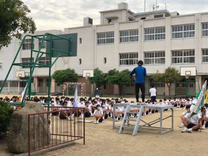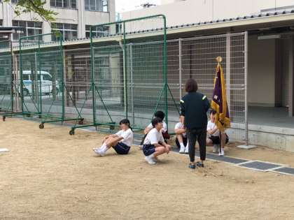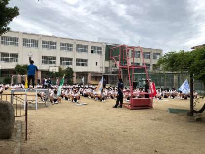 中庭に移動して、入場行進に備えます。