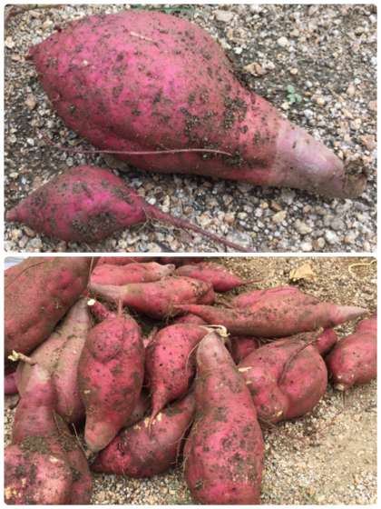 先週の金曜日の様子ですが、大きなさつまいもを収穫しました。