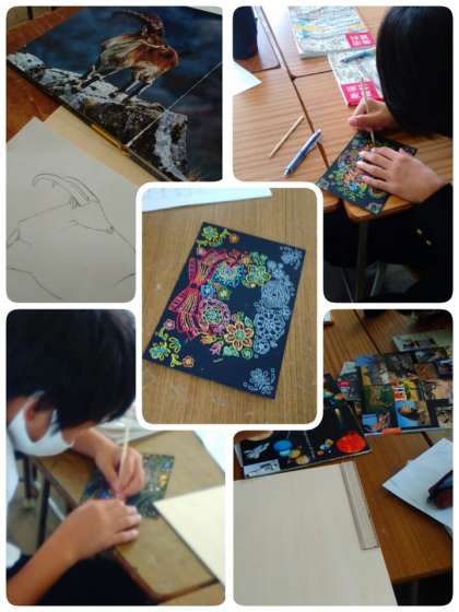 スクラッチボード、版画に取り組んでいます。