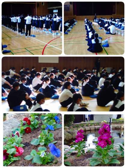 木曜日の朝は、2年生の学年集会です。2週間後の文化発表会、合唱コンクールに向けて練習が進んでいます。日頃の練習の積み重ねがいい発表につながります。頑張りましょう。