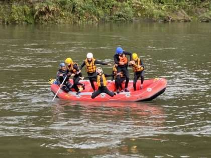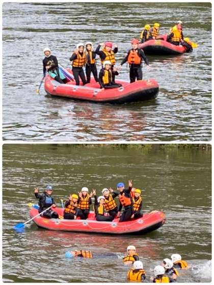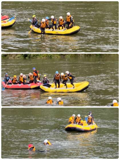 流れの穏やかなところで、川に飛び込んでいます。