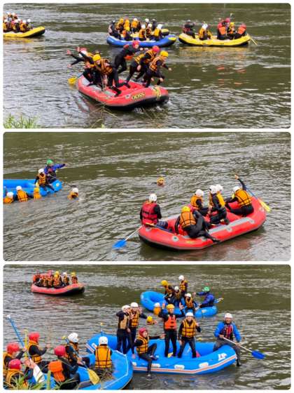 最後までボートから落ちずに踏ん張った平賀先生ですが、この後インストラクターさんに押されて、水に落ちたそうです。
