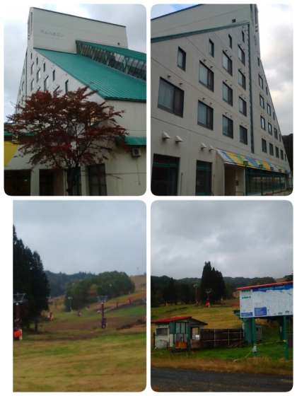 ホテルの外観です。すぐ裏はスキー場です。標高900m、明日の朝は冷え込みそうです。