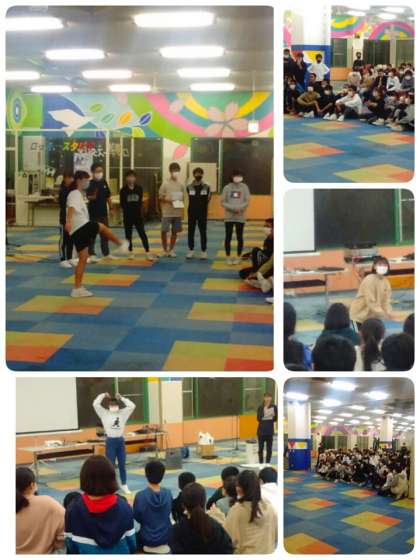 次はクラス対抗ジェスチャーゲームです。1分間で何問答えられるか。