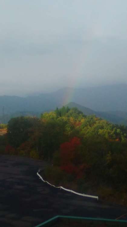 お世話になったレインボーホテルを後にして。空には虹が見えます。まさにレインボー。