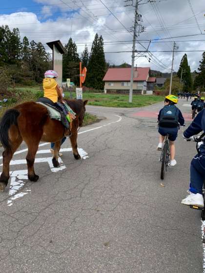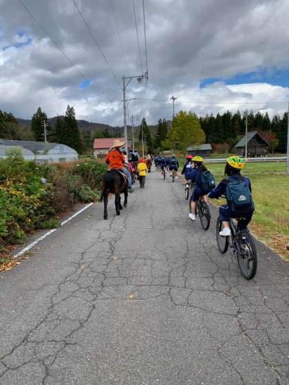 マウンテンバイクで走っていると引き馬と出会いました。近くで馬を見ると迫力があります。