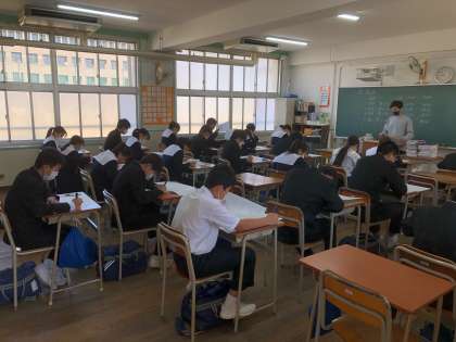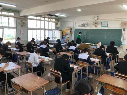 国語、理科、社会、数学、英語の順番でテストを行います。
