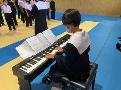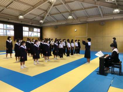 6時間目、格技室では1年2組が合唱の練習をしていました。
