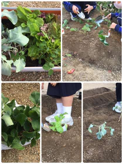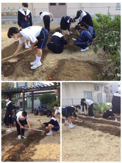 園芸部は、畑の休耕になっていた場所に新たに苗を植えました。