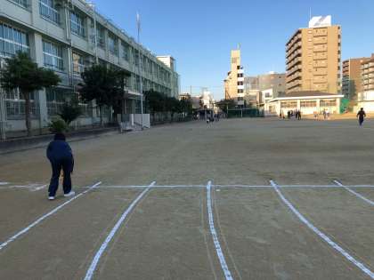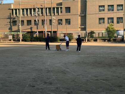 1年生の体育委員をはじめ各委員と放送部の人たちは、この時間から運動場のライン引きや用具の準備をしてくれています。