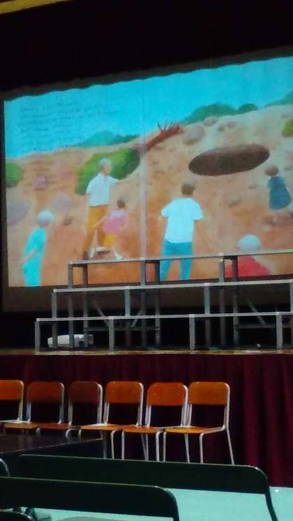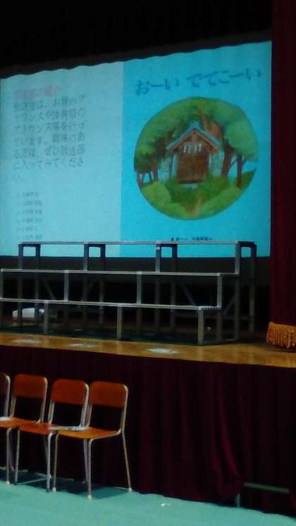 放送部の舞台発表は、絵本「おーい でてこーい」の読み聞かせです。物語に引き込まれました。