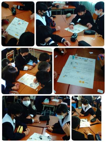 DoとDoesに注意して疑問文についての学習。グループですごろくをしながら、確認しています。