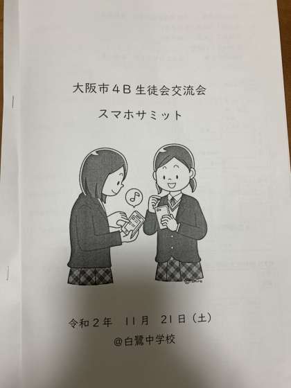 本日、生徒会役員2名が白鷺中学校に出向き、大阪市4B生徒会交流会スマホサミットに参加しました。