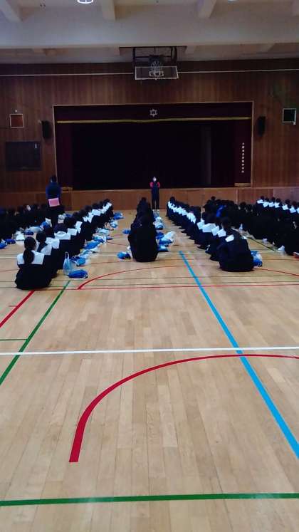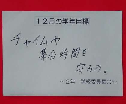 12月の目標、「チャイムや集合時間を守ろう」が発表されました。